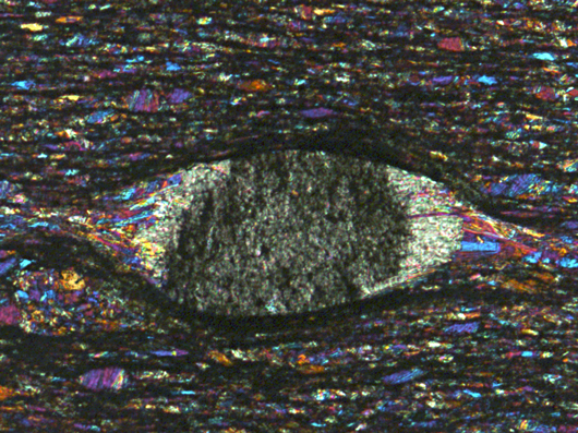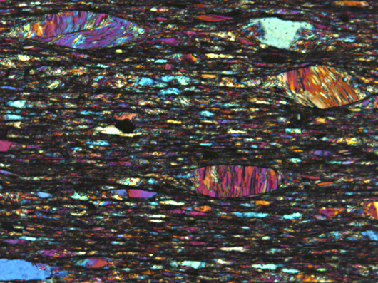 der Minerale wird durch die Deformation, d. h. Faltung fortgesetzt und führt infolge der Einengung zur Ausbildung der Schieferung. Je nach mineralogischer Zusammensetzung, regionalgeologischer Stellung sowie Deformationsgrad im Orogen, kann die Ausbildung der Schieferung unterschiedlich ausfallen. So zeigen die mährischen Schiefer eher rauhe Glimmerlagen und nicht ein weit weniger straffes Parallelgefüge wie z. B. die meisten spanischen