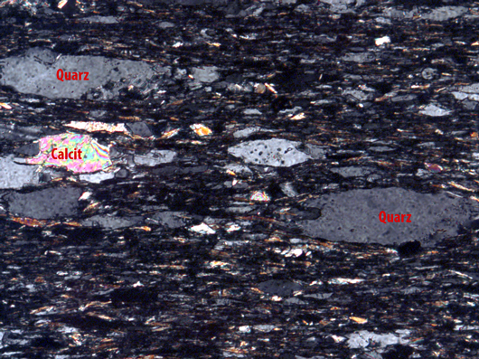 • Abb. 4: Quarzklasten. Im Mikroskop erscheinen sie grau bis weiß.