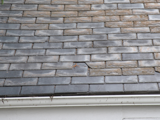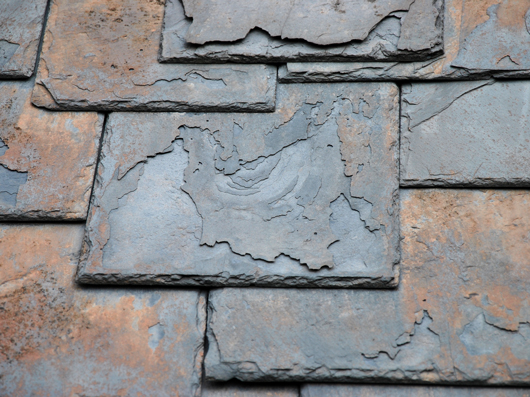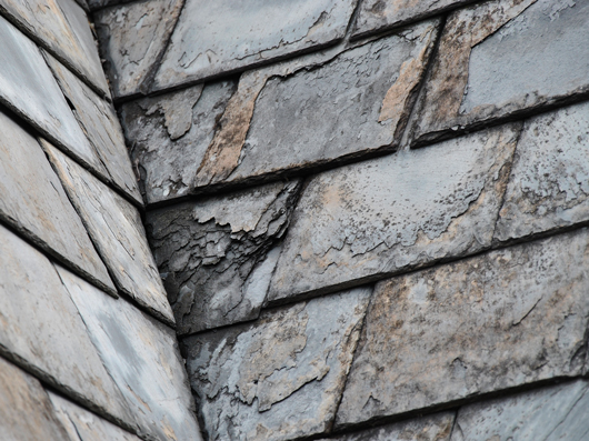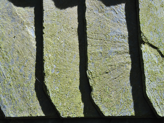 Beispielbilder für Veränderungen und Schäden von Schiefer nach ICOMOS. Zum Vergrößern bitte mit der Maus über das jeweilige Bild fahren.