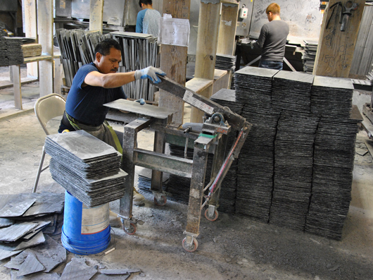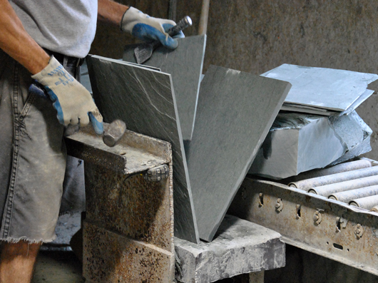 Abb. 6: Zurichten von Rechteckern (Hilltop Slate, Bundesstaat New York, USA).