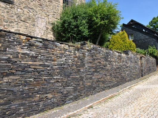 Auch wenn Schiefer primär als Dachschiefer bekannt und auch eingesetzt wird, sollen die Bilder verdeutlichen, dass Schiefer auch als Werkstein im Bau eingesetzt wurde und wird.