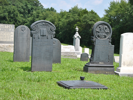 • Abb. 7 Stark verzierte Grabsteine aus Peach Bottom Schiefer auf dem Friedhof der "Slateville Presbyterian" Kirche