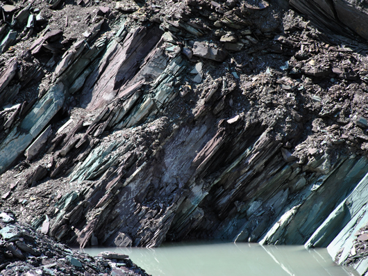 • Abb. 2 Wechsel von verschieden farbigen Schiefern (Purpur und Grün)