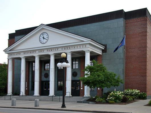 • Abb. 8 Schieferfassade mit grünem Schiefer am Gericht in Rutland (Vermont)
