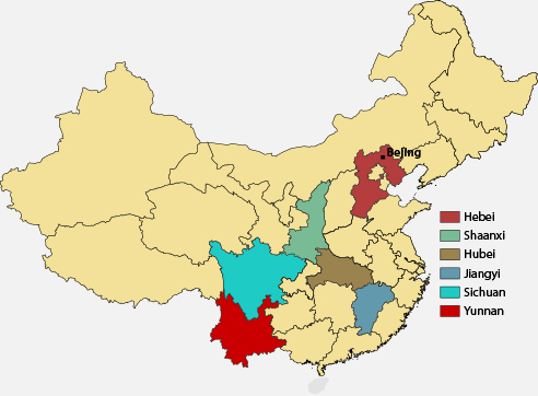 Ein großer Teil für den Export stammt von Hebei mit der Hauptstadt Peking. Peking Schiefer von Men Tou Gou wird wohl seit über 500 Jahren verwendet.