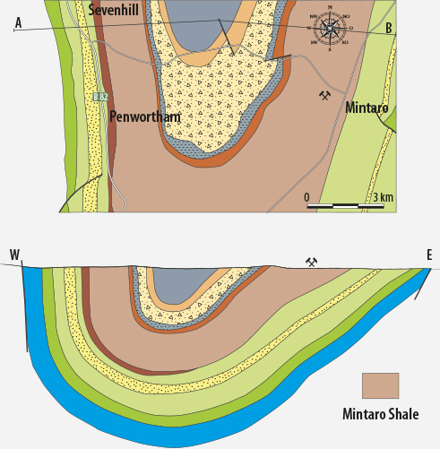 Die Schiefer von Mintaro werden im "Mintaro shale" innerhalb der "Belair Subgroup" abgebaut, die zum oberen Bereich der neoproterozoischen "Burra Group" innerhalb der "Adelaide Geosynklinale" gehört. In der Nähe der Stadt Adelaide beginnt die "Belair Subgroup" mit der groben "Sturtian Arkose" welche auch als Mitcham und Leasingham Quarzite bekannt sind und die "Saddleworth Formation" überlagern. Diese Formation wird als eine Sequenz Grenze betrachtet, d.h. das es zum Hagenden hin in die geschichteten feinkörnigen Einheiten des Mintaro Shale übergeht.