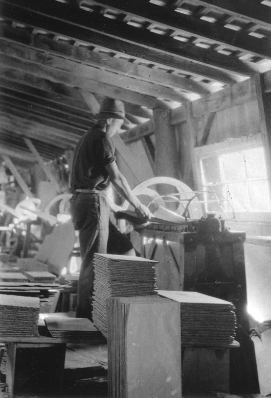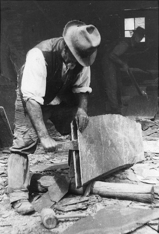 Abb. 8 A man hand splitting roofing slate at the Australian Slate Quarries (Willunga, 1924).