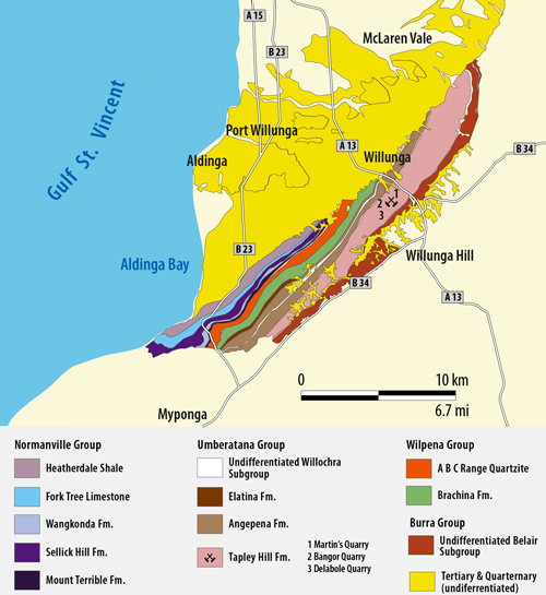 Vereinfachte geologische Karte von Willunga.